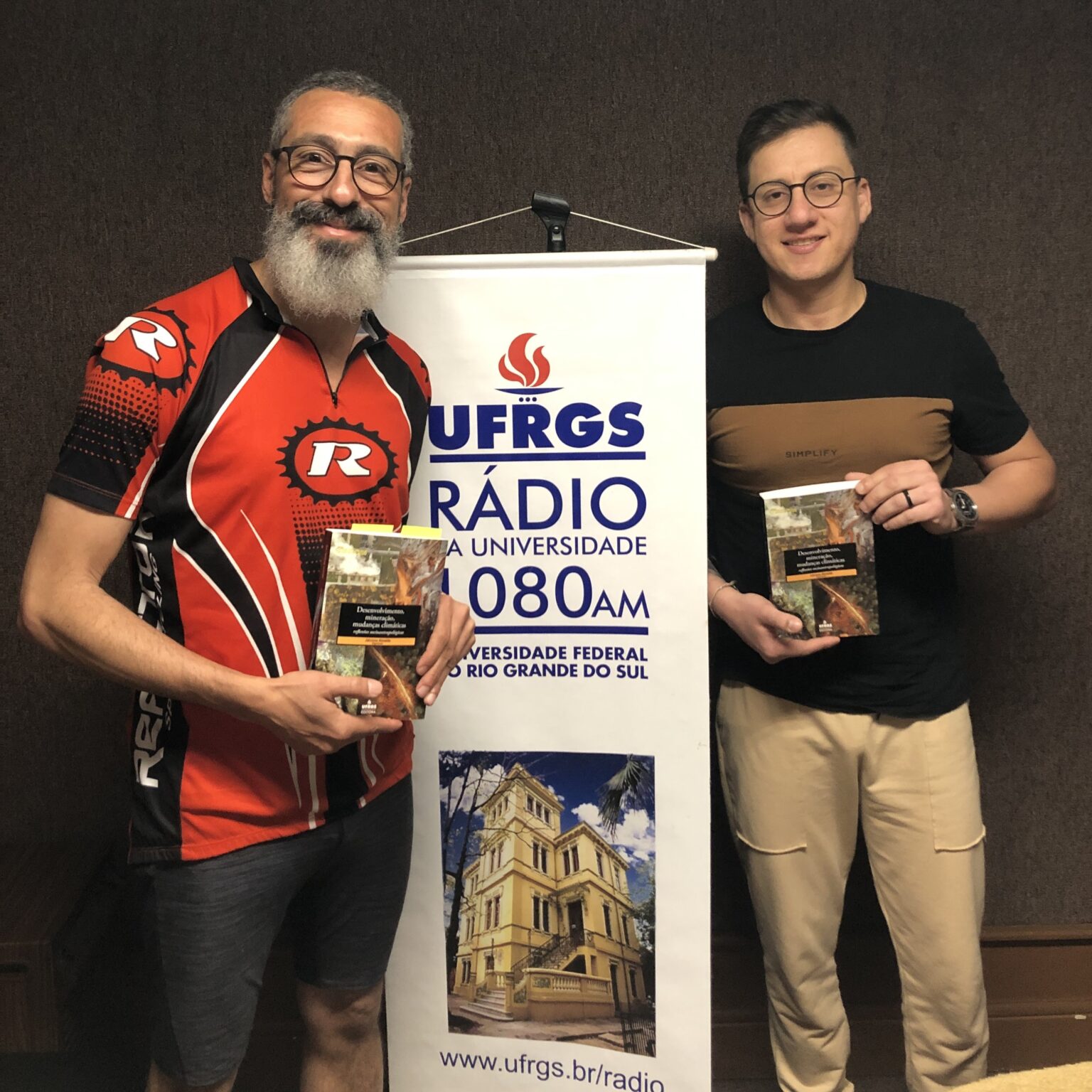 O professor Gabriel Bandeira Coelho e o doutorando Frederico Salmi nos apresentaram a obra “Desenvolvimento, Mineração, Mudanças Climáticas: Reflexões Socioantropológicas”.